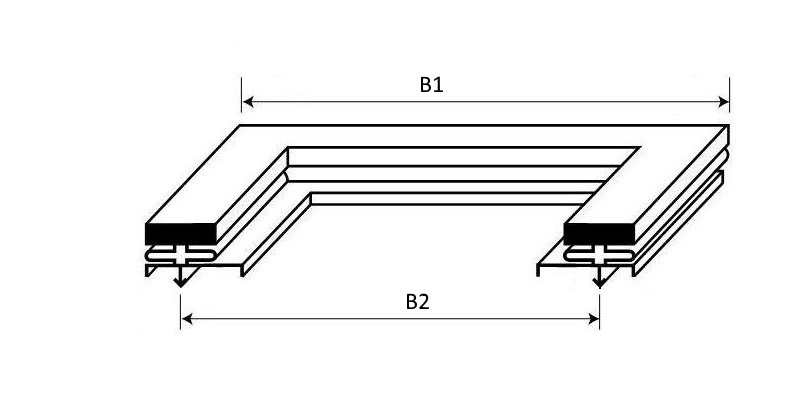 размер уплотнительной рамки замеряем по внешнему "родного" уплотнителя - на схеме вариант замера "В1".